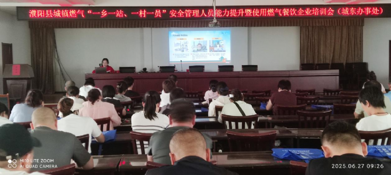 为强化燃气安全管理责任落实,提升基层安全管理人员专业素养与餐饮企业燃气安全操作水平,2025年6月27日上午,由濮阳县公用事业局主导,濮阳通用绿能天然气有限公司联合濮阳县城东办事处组织开展一场“一乡一站、一村一员”安全管理人员能力提升暨使用燃气餐饮企业培训会。