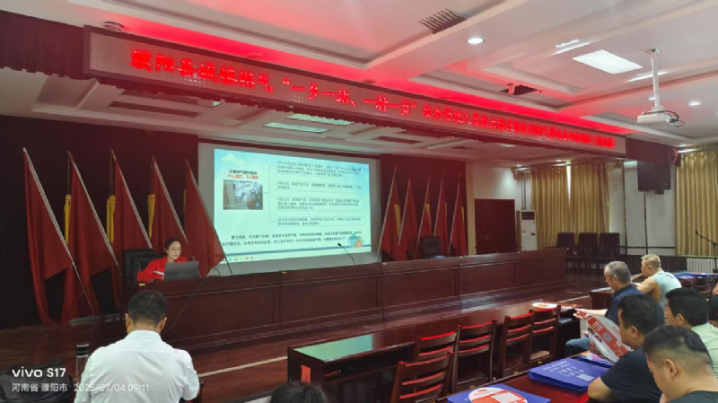 为切实提升基层安全管理人员专业素养,强化餐饮企业燃气安全管理水平,筑牢安全生产防线,2025年7月4日上午九点,在濮阳县公用事业局主导下,濮阳通用绿能天然气有限公司联合濮阳县城关镇政府组织开展“一乡一站、一村一员”安全管理人员能力提升暨餐饮企业燃气安全培训会。